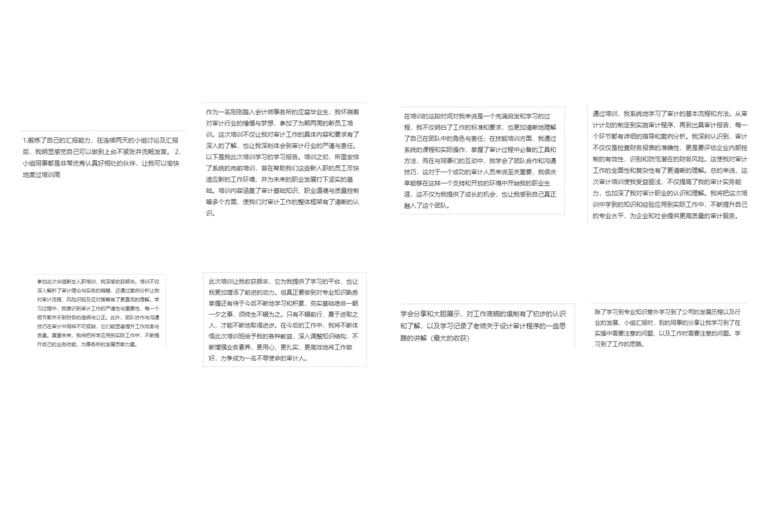 本次培訓(xùn)秉承“創(chuàng)新引領(lǐng),實(shí)踐出真知”的理念,力求通過新穎的教學(xué)模式和豐富的教學(xué)內(nèi)容,激發(fā)新員工的自主學(xué)習(xí)熱情,促進(jìn)知識的有效吸收與轉(zhuǎn)化。培訓(xùn)形式上,今年,我們采用了以小組工作為核心的教學(xué)模式。通過小組討論、工作匯報等形式,讓新員工在互動交流中熟悉項(xiàng)目制工作形式,實(shí)現(xiàn)從被動接受到主動參與的轉(zhuǎn)變,為日后的審計(jì)工作奠定堅(jiān)實(shí)的基礎(chǔ)。培訓(xùn)課程體系方面,課程體系緊密圍繞“知識輸入+實(shí)操輸出”的理念構(gòu)建,涵蓋了審計(jì)工作的方方面面。從審計(jì)必備的背景知識到重要審計(jì)程序的應(yīng)用,從常見審計(jì)底稿的填制技巧到審計(jì)必備商務(wù)技能的提升,再到最后的審計(jì)實(shí)操沙盤模擬與模擬案例審計(jì)思路講解,每一環(huán)節(jié)都精心設(shè)計(jì),旨在全方位提升新員工的綜合素質(zhì),讓新員工在實(shí)戰(zhàn)演練中深化理解,增長審計(jì)思維。